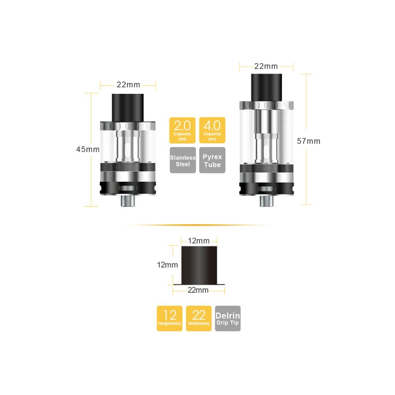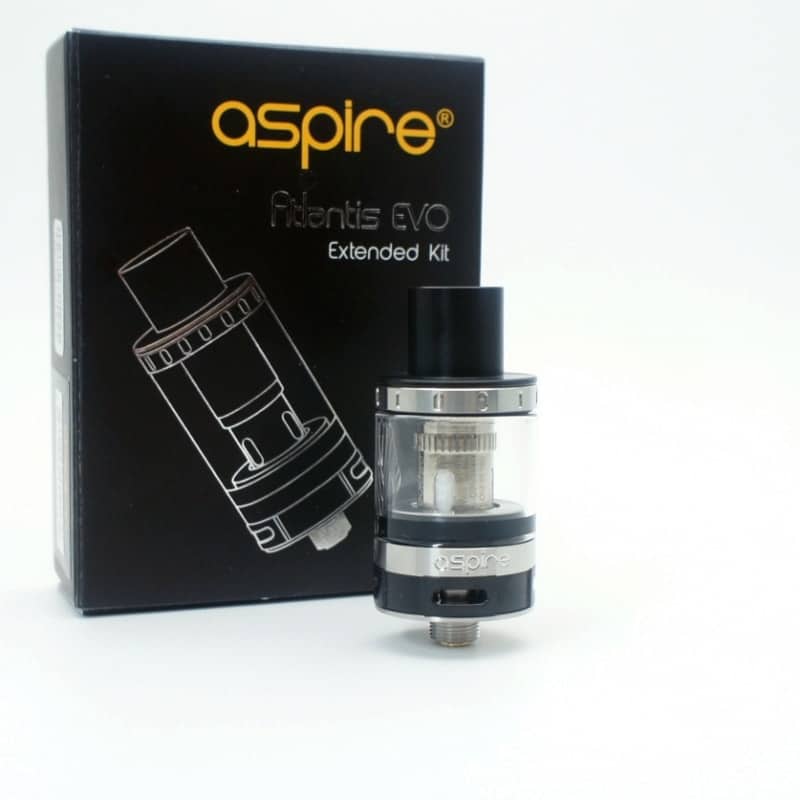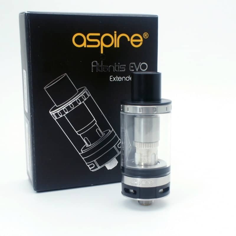 Aspire Atlantis EVO Extended Kit, diseño inovador con acabados de la mas alta calidad construido en acero inoxidable y tanque de pyrex, se trata de un atomizador diseñado para sub ohms y generar grandes cantidades de vapor, utilizando resistencias de repuesto de atlantis, con la opcion de utilizarse en tamaño normal (pequeño) con capacidad de 2ml o utilizar el kit extensor ya incluido pata hacerlo con capacidad de 4ml.