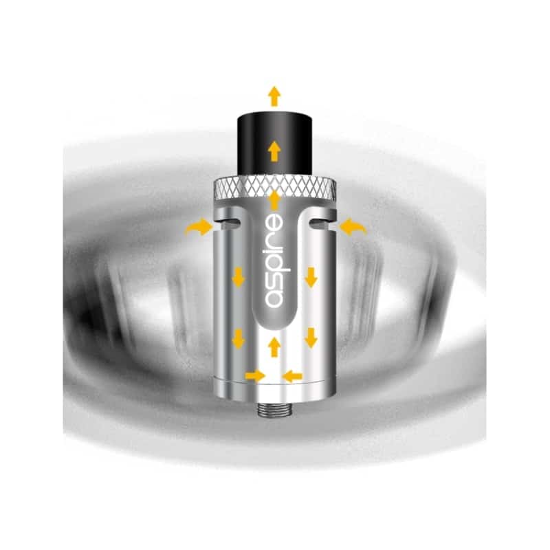 Su flujo de aire viaja desde sus costados en la parte superior hasta el centro de la resistencia para brindar el vapor y sabor deseado sin fugas en la base.