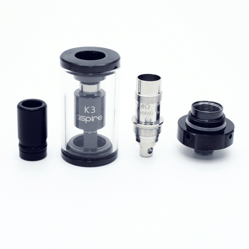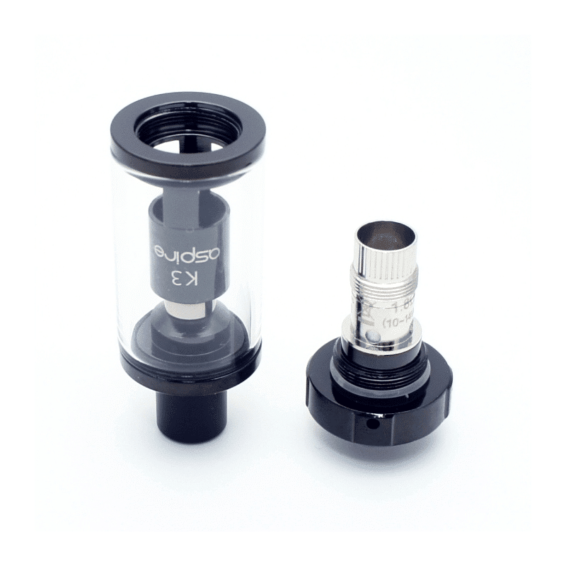 El atomizador K3 es muy sencillo y elegante, se llena por la parte inferior y sus resistencias se cambian fácilmente, utiliza las mismas resistencias de nautilus BVC, se recomienda utilizar resistencias de 1.8 ohm, su flujo de aire es cerrado para un estilo de clada de boca a pulmón, como normalmente se acostumbra al fumar tradicionalmente.