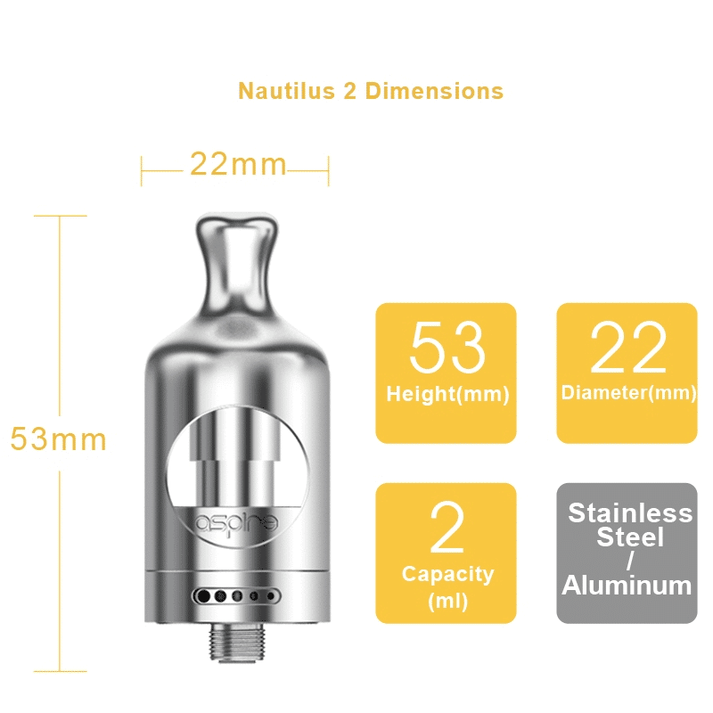 El Aspire Nautilus 2 es un atomizador diseñado para caladas de boca a pulmón simulando el flujo de aire de un cigarro convencional aunque cuenta con regulación de aire en su base para ajustar al gusto personal de cada usuario. En su interior cuenta con una chimenea corta que te brinda mayor sabor pues el vapor viaja menos distancia para llegar a tu boca.