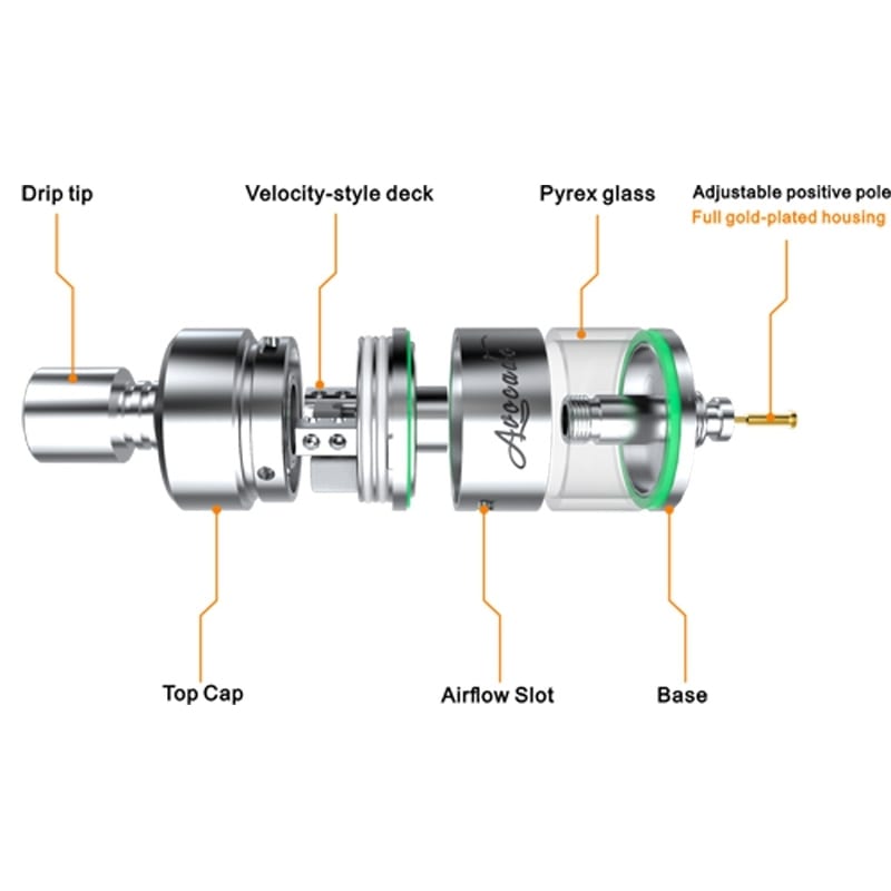 GeekVape revoluciona los estilo genesis con este Avocado que destaca por su deck estilo velocity convirtiéndolo en uno de los génesis más fáciles de construir considerando que muchos le sacan la vuelta a los atomizadores génesis por sus complicados builds, probablemente este pueda cambiar la imagen de los atomizadores génesis que normalmente los asociamos o identificamos como atomizadores complicados.
