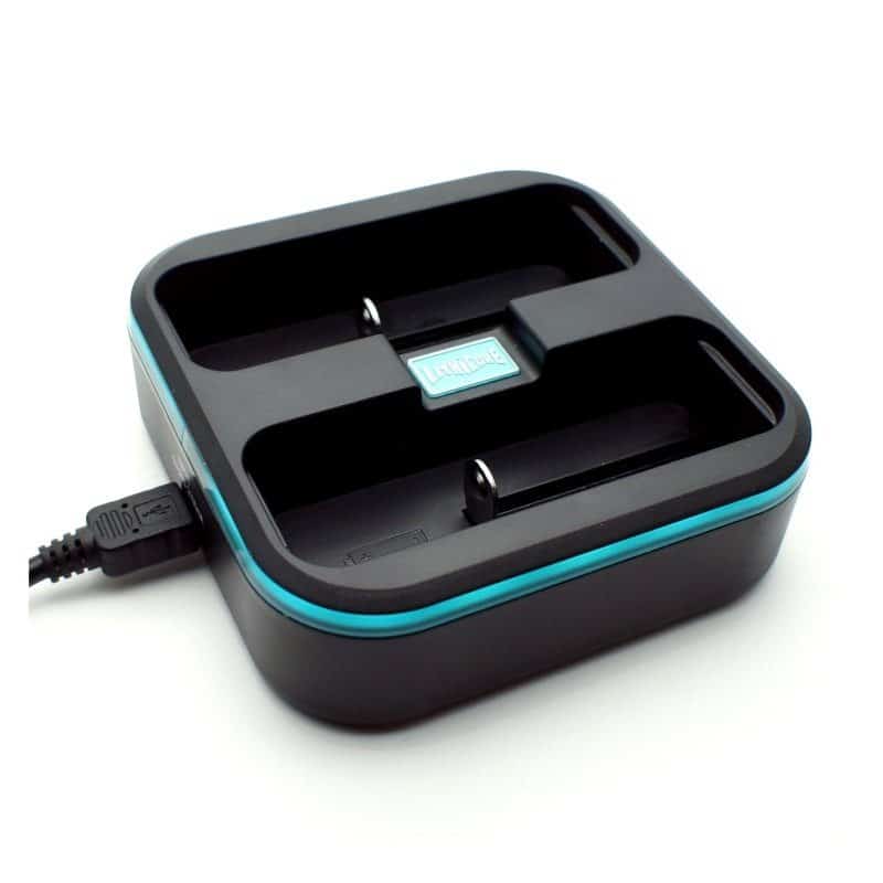 El cargador Pulse de Lithicore es pequeño y fácil de utilizar, solamente instalas la batería a cargar y reconoce automáticamente el tipo y estilo de batería, una vez conectado se enciende su marco en color celeste y al instalar la batería indica que se encuentra en proceso de carga oscilando la luz, cuando la luz se mantiene permanente significa que llegó a su carga completa.