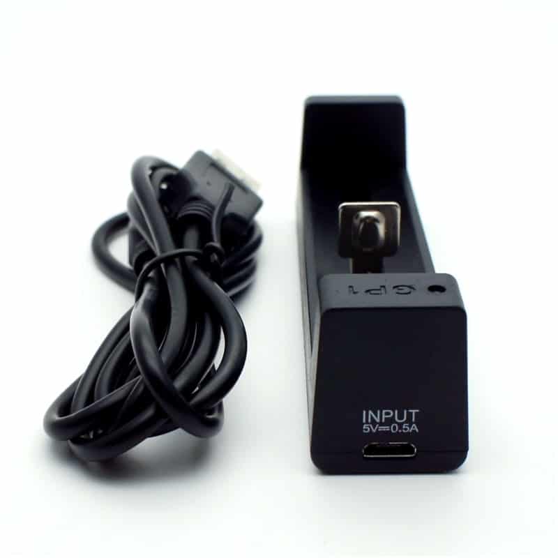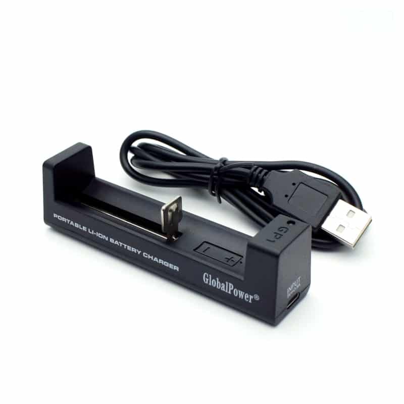 Cargador Global Power GP1 sencillo universal para baterias 14500, 18350, 18490 , 18500, 18650 y 26650 de conexíon USB.