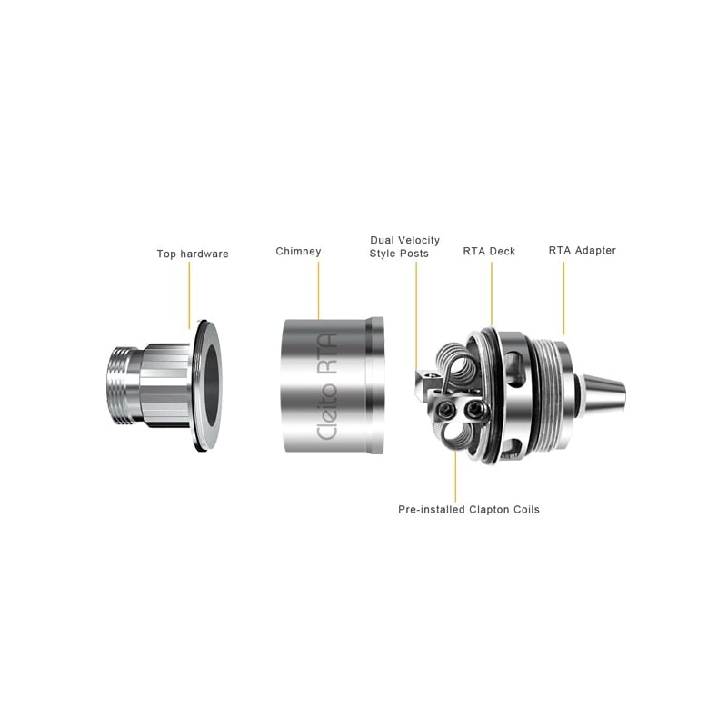 Base RTA (reconstruible) para atomizador Aspire Cleito, muy facil de armar para doble resistencia que te brindara una excelente producción de vapor y sabor, tamaño grande inlcuso para instalar resistencias estilo clapton.