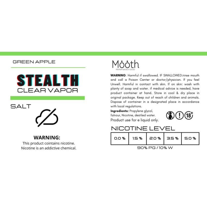 Green Apple STEALTH Clear Vapor Salt eliquid by Mooth