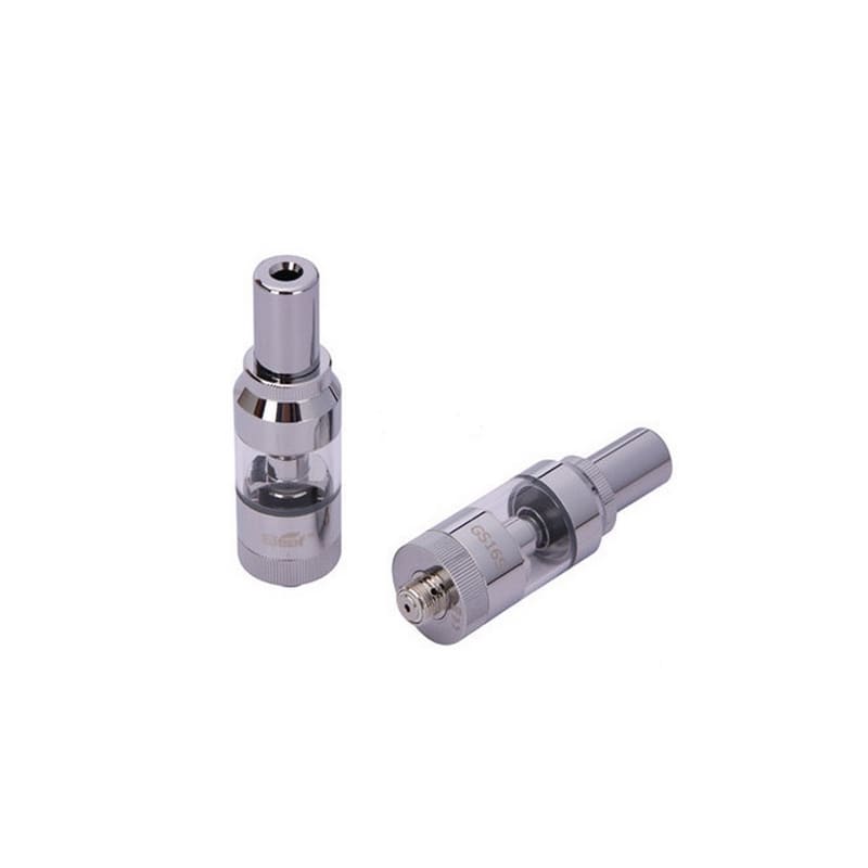 GS16s esta generación de atomizadores de Eleaf fabricado en acero y tanque de pyrex, cuenta con boquilla tipo 510 intercambiable y conexión 510, utiliza resistencias de repuesto faciles de intercambiar pues se instalan solo a presión.