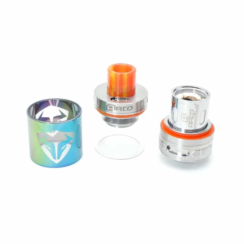 El Horizon ARCO Tank es un atomizador sub ohm con 25mm de diámetro y capacidad de 5ml con llenado por la parte superior muy sencillo con solo girar la tapa sin necesidad de desenroscar e introduce su tanque en color (vacuum plated glass), aunque lo más destacable son sus resistencias con Papel Flax “Paper Flax”, son resistencias con algodón orgánico guiado por Paper Flax haciendo unas resistencias únicas e innovadoras pues por su capacidad de retención de líquido y mayor soporte al calor te brindan un sabor más limpio generando grandes cantidades de vapor.