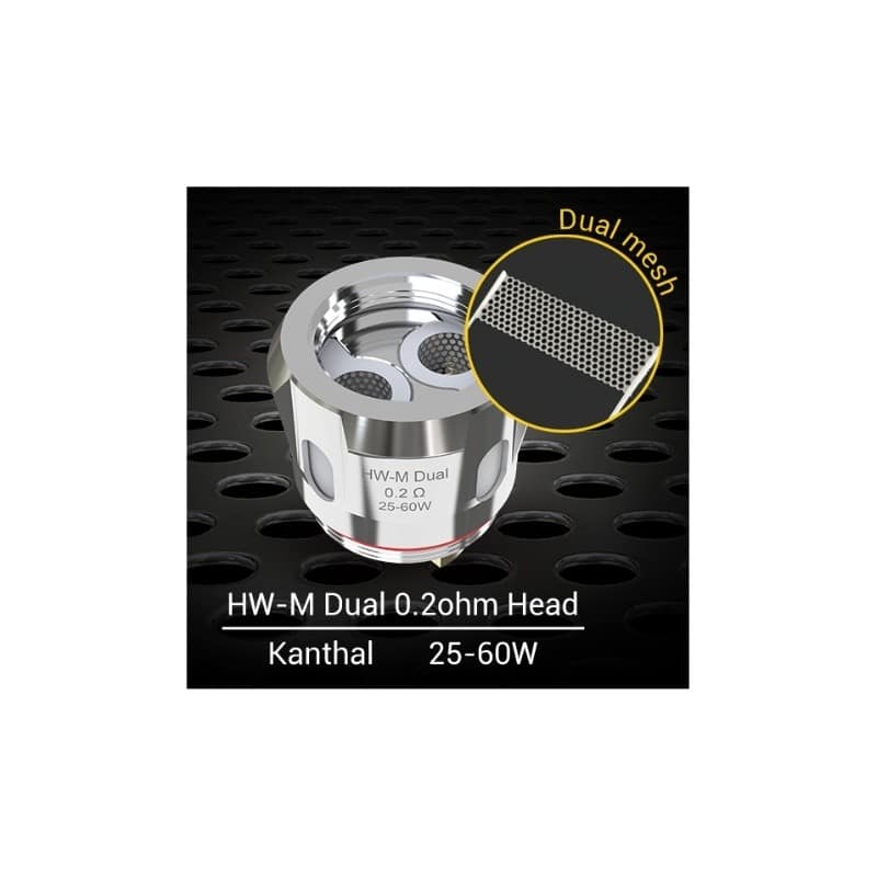 HW-M- Resistencia construida en Kanthal de 0.2 ohm estilo placa multiperforada que brinda un sabor excepcional y gran producción de vapor y vida extendida capaz de trabajar en potencia alta entre 25 y 60 watts.