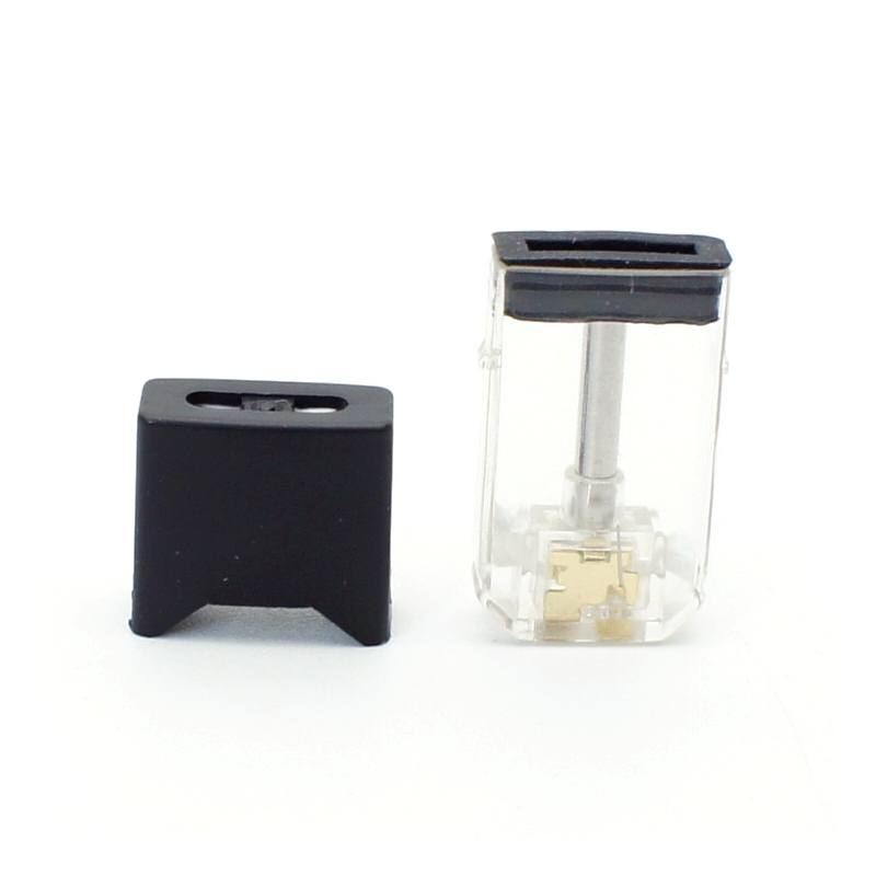 Los Pods vacíos se abren levantando con cuidado las pestañas laterales para retirar la tapa (color negra), después de la tapa se retira el tapón de goma para poder rellenar, una vez lleno se vuelve a ensamblar para utilizar.