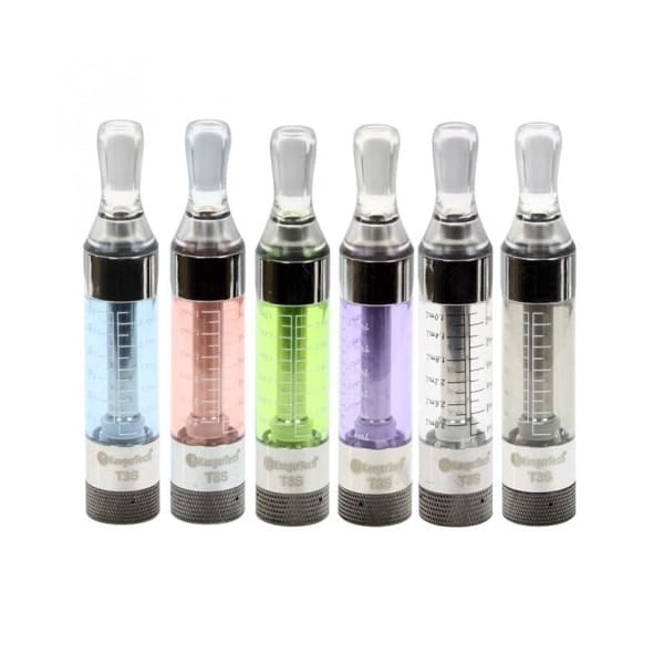 Les presentamos al hermano menor del ya aclamado “Protank”- el Kanger T3s. La resistencia para este clearomizer en particular, se encuentra en la parte inferior, lo que asegura que la mecha se mantenga húmedo en todo momento hasta la última gota de e-líquid. Les aseguramos que los sabores son geniales y el vapor es grueso y abundante. El Kanger T3s se ve absolutamente hermosa en cualquier batería eGo  y cuenta con 3 ml de e-líquido! Viene con las siguientes características: