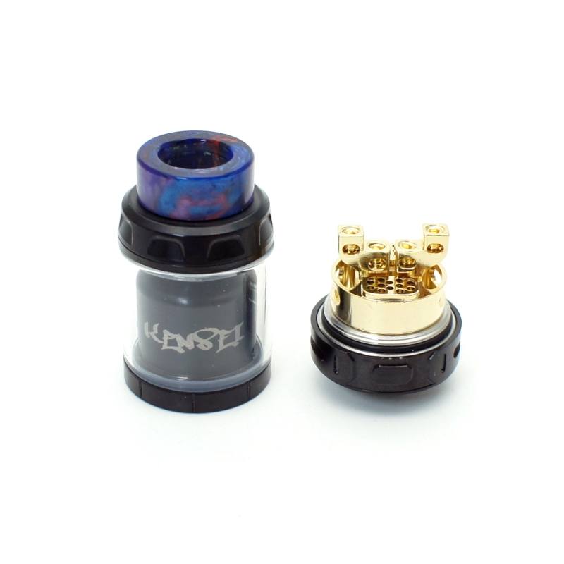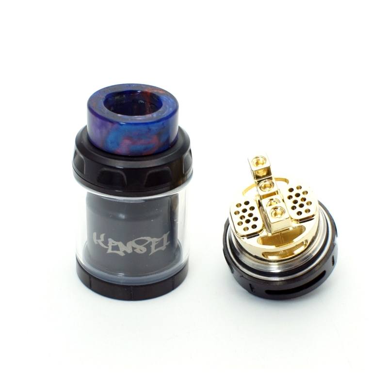 El Kensei cuenta con la habilidad de producir un gran sabor y producción de vapor gracias a su excelente diseño en su flujo de aire con gran espacio para acomodar resistencias de gran masa y algodón que genera una excelente absorción. Para facilitar el llenado y evitar derrames se puede cerrar su flujo de alimentación de líquido para poder llenar por la parte superior de manera sencilla.