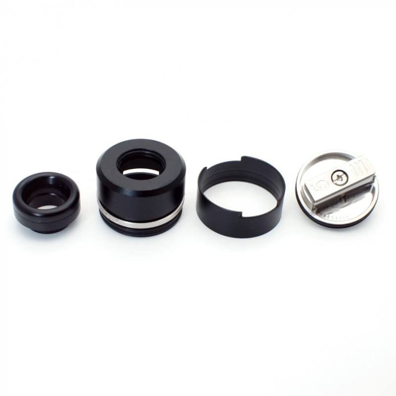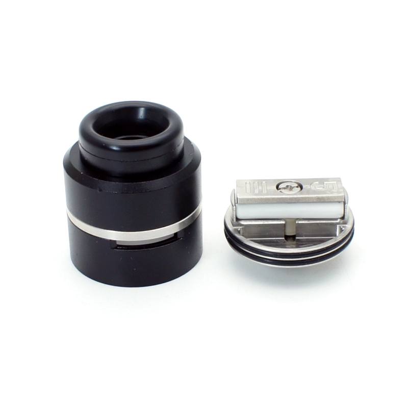 El Layercake es un atomizador de goteo o dripeo de 24mm. con opción a utilizar pin BF para utilizar con equipos estilo Squonk, destaca por su base estilo prensa donde se pueden instalar resistencias de prácticamente cualquier tamaño con una división en el centro en cerámica para separar entre positivo y negativo y se aprieta mediante un solo tornillo central.