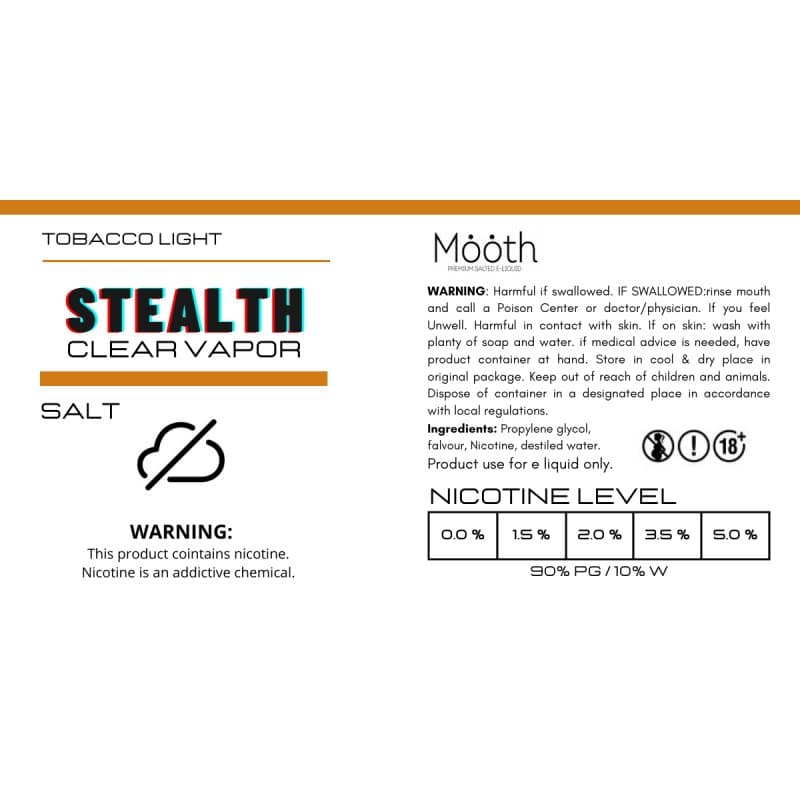 Light Tobacco STEALTH Clear Vapor Salt eliquid by Mooth
