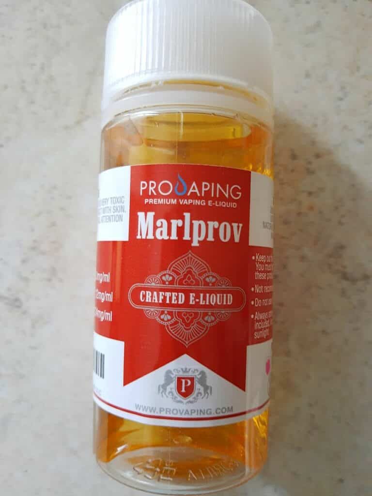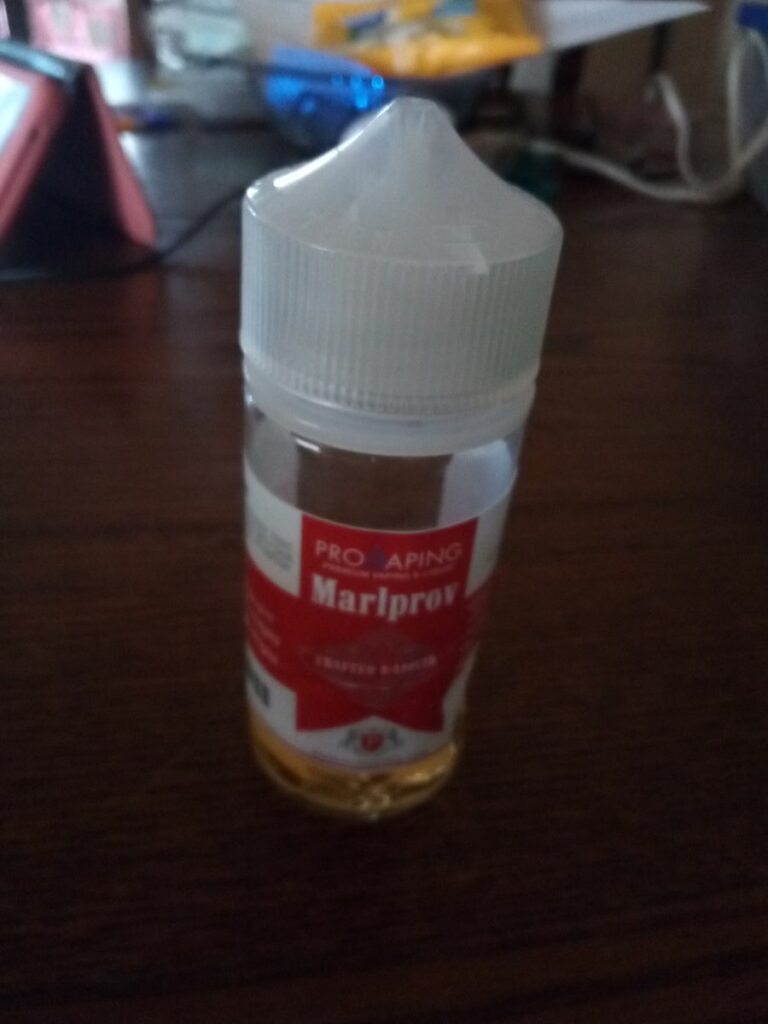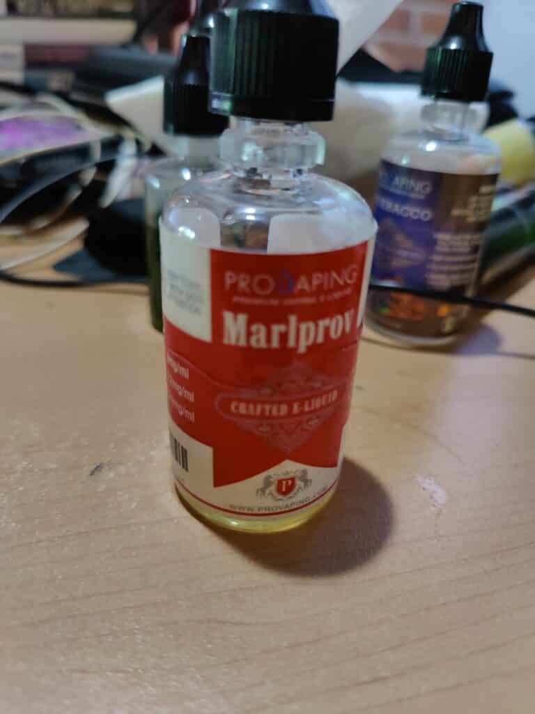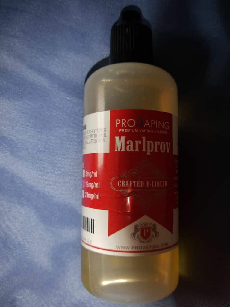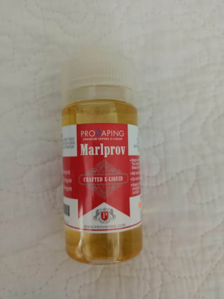 Adquirí un líquido de nicotina con un nivel muy bajo (3 mg/ml) dado que al cabo de este tiempo vapeando, estoy logrando bajar el nivel de nicotina y la mejor opción de hacerlo es con una de mis fragancias favoritas que es el Marlprov.