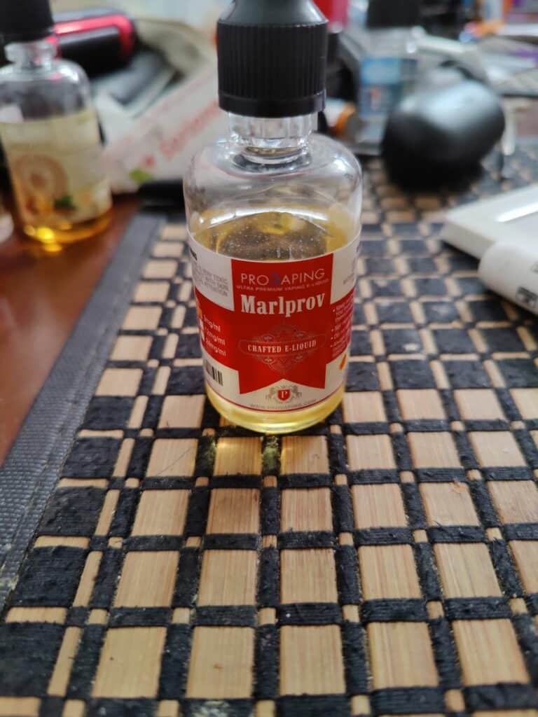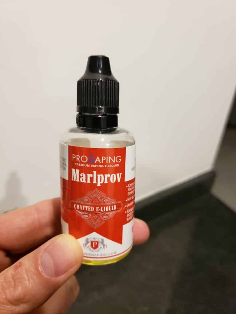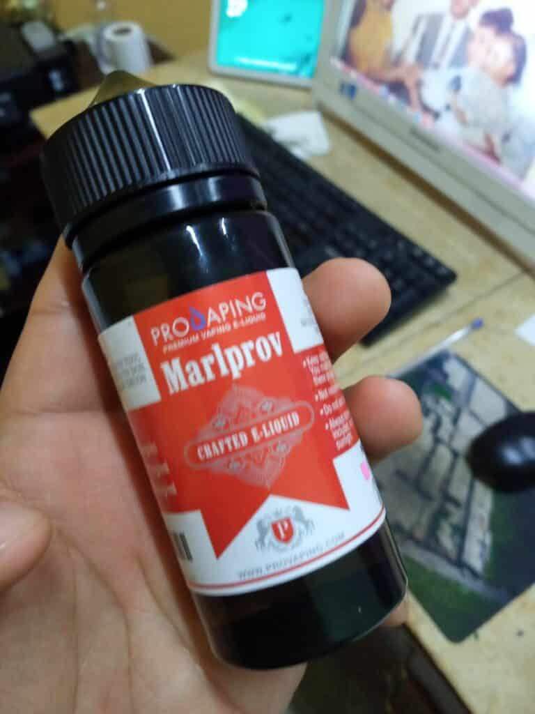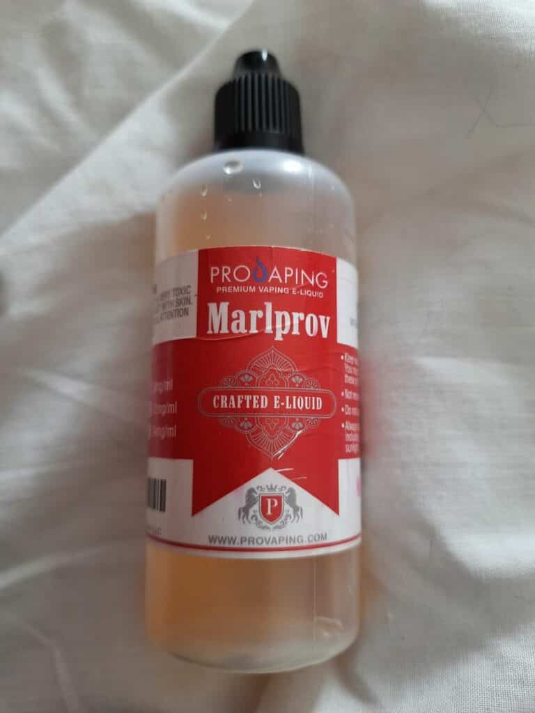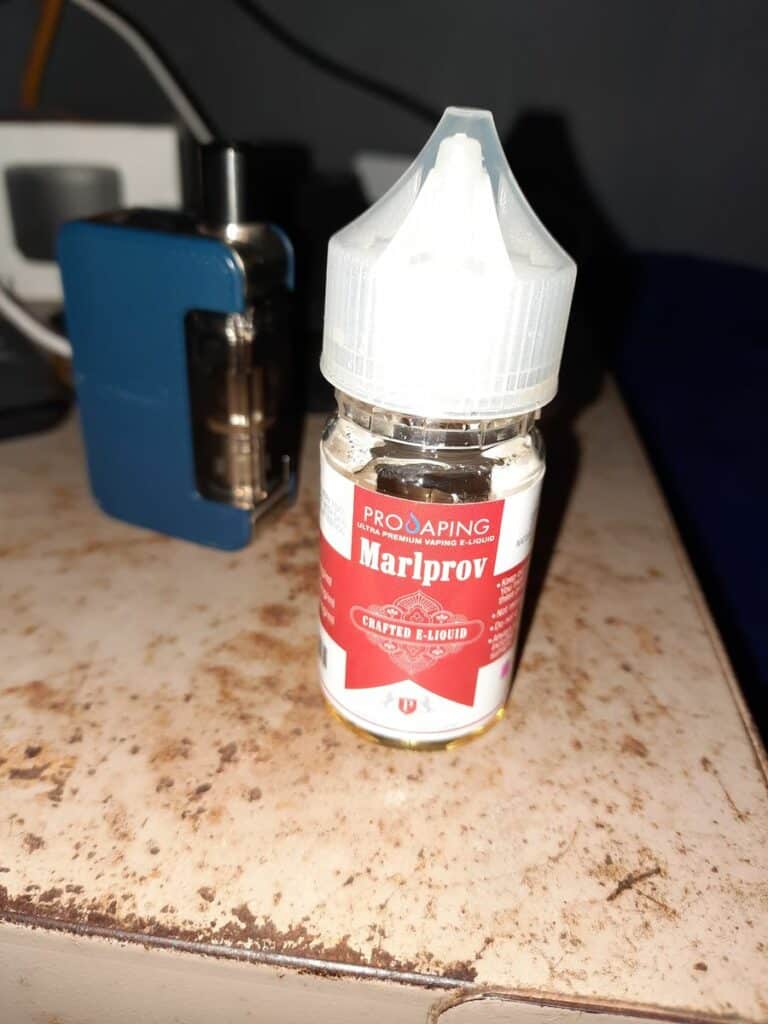 Adquirí un líquido de nicotina con un nivel muy bajo (3 mg/ml) dado que al cabo de este tiempo vapeando, estoy logrando bajar el nivel de nicotina y la mejor opción de hacerlo es con una de mis fragancias favoritas que es el Marlprov.