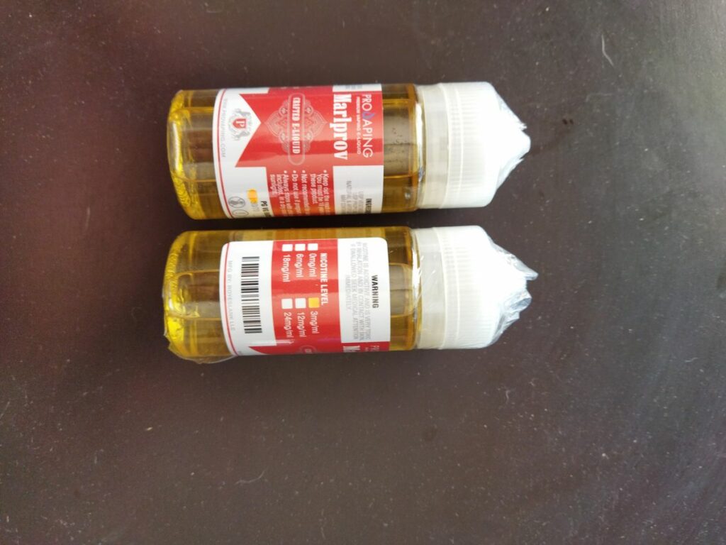 En este último pedido, me enfoque a líquidos de nicotina con un nivel muy bajo (3 mg/ml) para un amigo que lleva mucho tiempo vapeando y ha logrado bajar el nivel de nicotina (entre 0 y 3 mg/ml) y le gustó mucho la fragancia Marlprov.