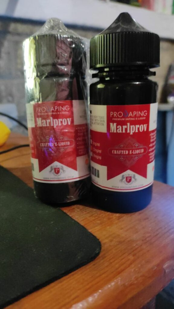 En este pedido, renové un líquido de mis fragancias favoritas como el Marlprov (6 mg/ml nicotina). Además, adquirí un líquido de nicotina con un nivel muy bajo (3 mg/ml) dado que al cabo de este tiempo vapeando, estoy logrando bajar el nivel de nicotina y la mejor opción de hacerlo es con una de mis fragancias favoritas que es el Marlprov.