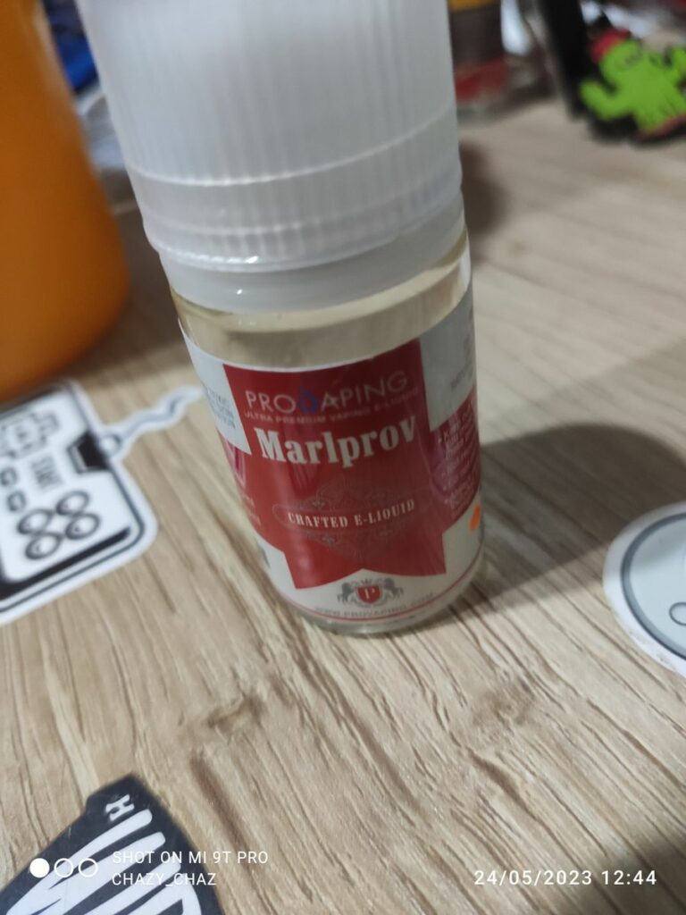 En este pedido, renové un líquido de mis fragancias favoritas como el Marlprov con un nivel muy bajo (3 mg/ml) dado que al cabo de este tiempo vapeando, estoy logrando bajar el nivel de nicotina y la mejor opción de hacerlo es con una de mis fragancias favoritas que es el Marlprov.