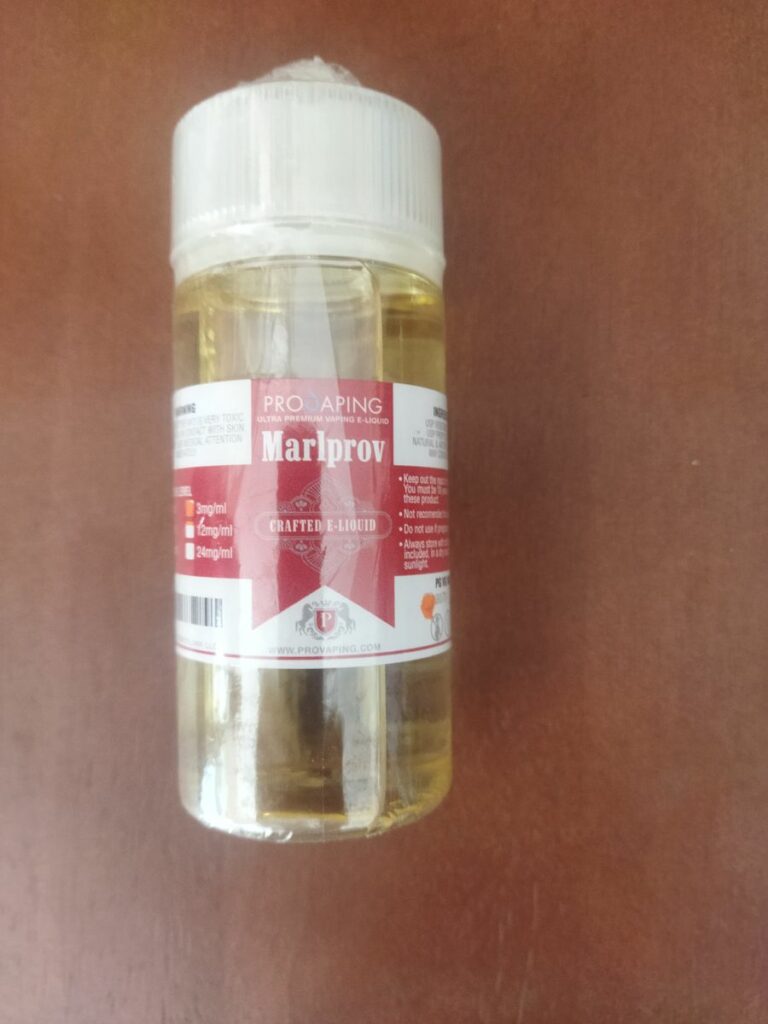 En este pedido, renové un líquido de mis fragancias favoritas como MarlProv con un nivel muy bajo (3 mg/ml) dado que al cabo de cierto tiempo vapeando, estoy logrando bajar el nivel de nicotina