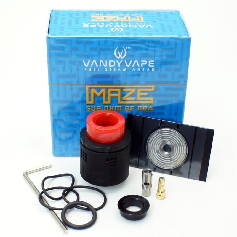 El MAZE SUB OHM BF RDA es un atomizador “RDA” diseñado y fabricado por Vandy Vape, con 24mm de diámetro que realmente no viene siendo un RDA completamente pues utiliza resistencia propia estilo disco (laberinto) maze .