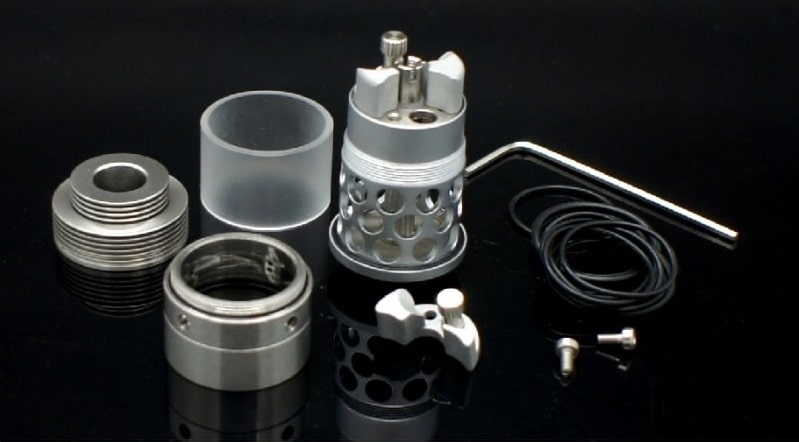 Este atomizador estilo genesis al igual que la versión pequeña tiene la flexibilidad de configurar doble resistencia o sencilla cambiando la base (ya incluida) dependiendo la configuración que prefieras, cuanta con control de flujo de aire y puede utilizarse con malla o bien con algodón.