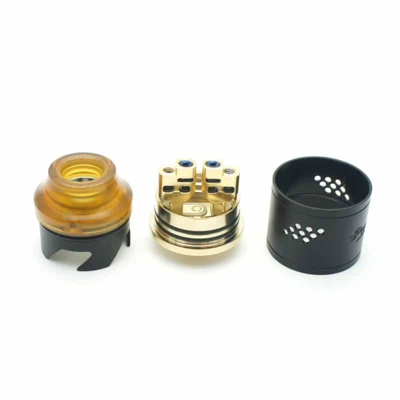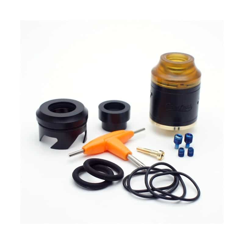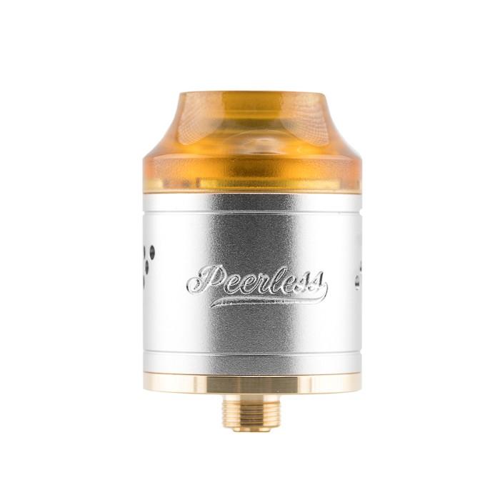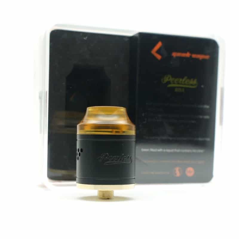 Geek Vape Peerless RDA, atomizador de goteo (dripeo) con un diseño innovador en su deck para instalar resistencias con mayor masa o resistencias pequeñas, incluye también un poste con canal para utilizar en equipos con función skquonk, su base cuenta con suficiente tamaño para alojar mayor liquido en su interior y puede ser configurado con resistencia doble o sencilla, su diámetro es de 24mm.