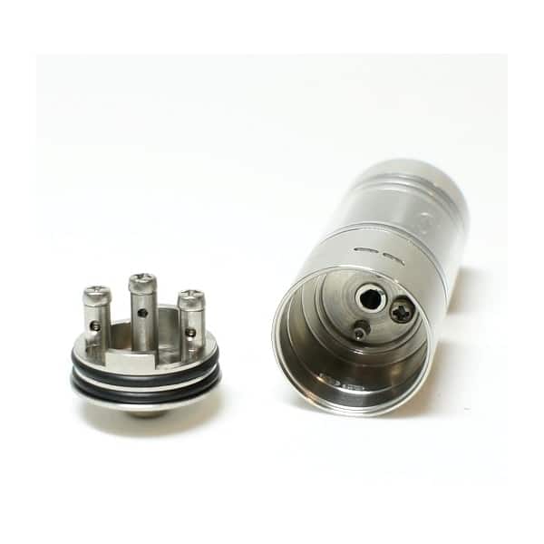 Pontus RDTA (Rebuildable drip tank atomizer), atomizador original de EHPRO.  se trata de un atomizador de dripeo con tanque en la parte superior, ingeniosamente fabricado pues con este atomizador no necesitas cargar con tu bote de liquido para limentar tu RDA pues al pulsar el driptip o la parte superior alimentas tu resistencia o “build” en la parte inferior, un sistema inovador que puede facilitar la manera de usar un atomizador de dripeo con tanque.
