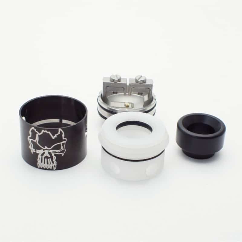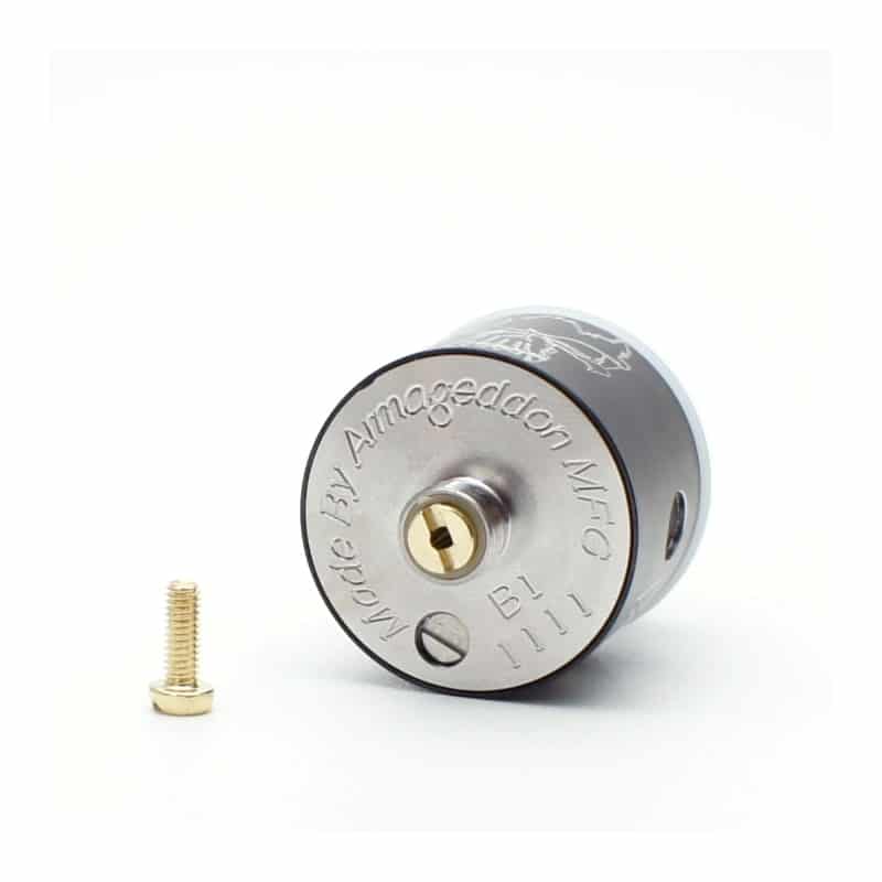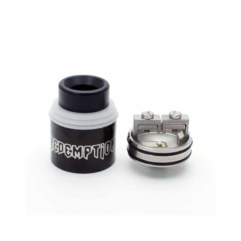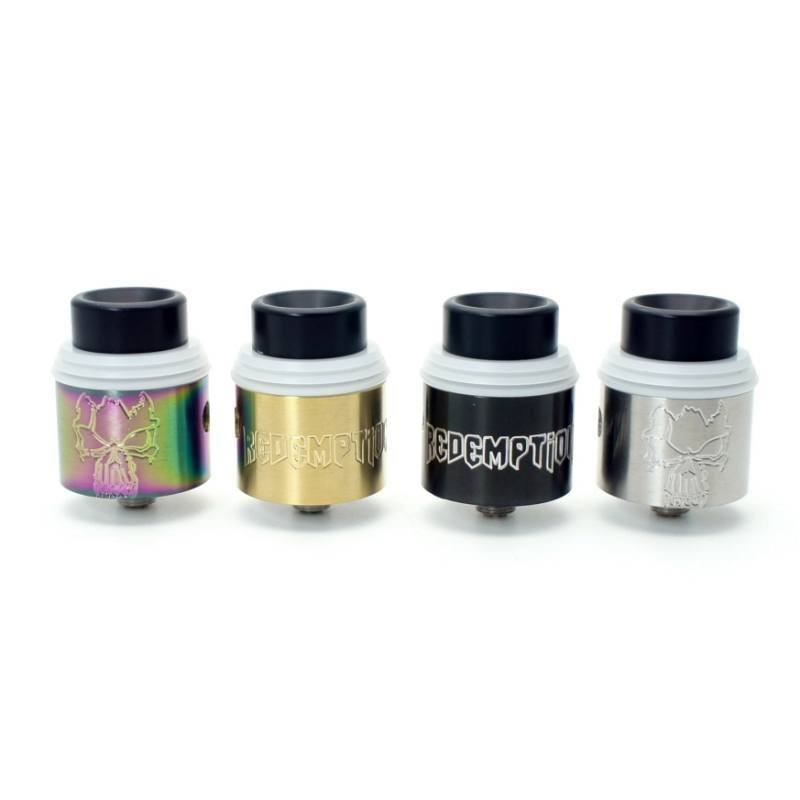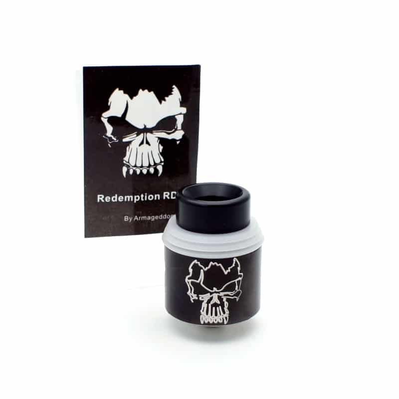 Redemption RDA “Clon” de Armageddon con 24mm de diámetro, Atomizador RDA para resistencia doble o sencilla con regulación de aire en los costados, boquilla ancha 810, cuenta también con pin para BF “Bottom Feeader” , su deck es muy fácil de manejar por su tornillería grande y postes estilo plancha para instalar resistencias de gran masa o más elaboradas.