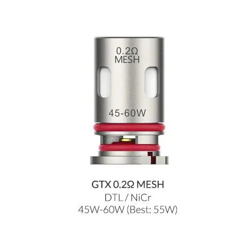 - GTX 0.2 ohm Mesh Coil, para uso entre 45 – 60 watts de potencia.