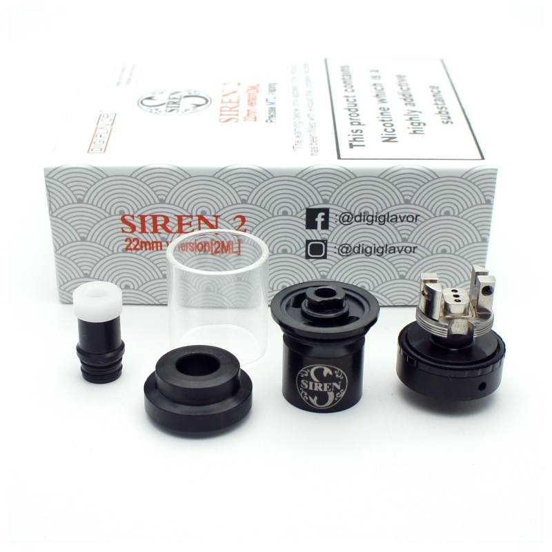 SIREN 2 “Clon” originalmente de Digiflavor, un atomizador RTA diseñado para vapeo de boca a pulmón con una calada cerrada (precise MTL vaping), con 22mm de diámetro y 2ml de capacidad dirigido a usuarios que gustan de un gran sabor en una calada cerrada simulando el estilo de succión de un cigarro tradicional.