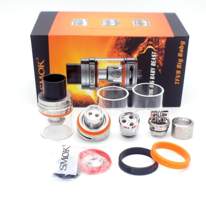 El Smok TV8 Big Baby Beast Tank es la versión intermedia entre el famoso TFV8  y TFV8 Baby con capacidad de 5ml, control de flujo de aire, llenado superior y diferentes modelos de resistencias diseñadas para utilizarse con alta potencia para producir grandes cantidades de vapor.