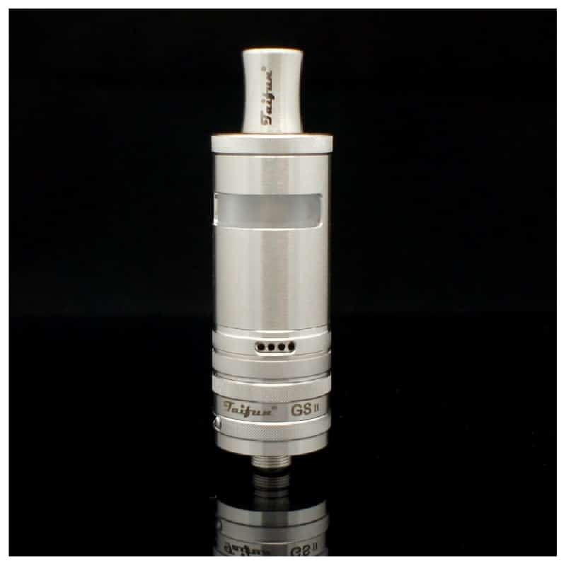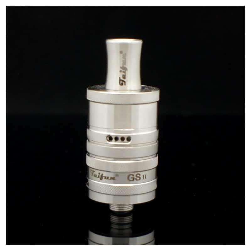 Taifun GS II, atomizador RTA con opcion a RDA, un atomizador muy particular, definitivamente para usuarios avanzados pues sus multiples configuraciónes te permiten configurar tnato con malla , algodon , cilica, etc…