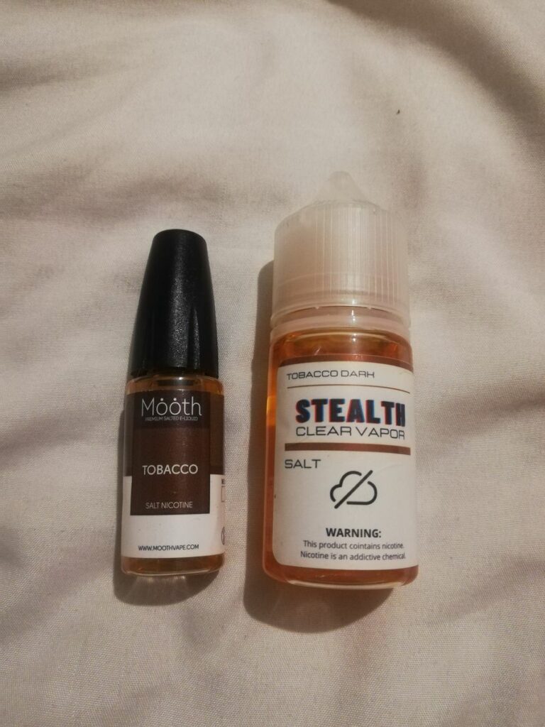 Tiene buen sabor lo utilizo para rellenar cartuchos juul lo combine con Dark Tobacco STEALTH Clear para que Dark Tobacco STEALTH Clear fuera más viscoso y me supiera menos fuerte ya que TOBACCO – MȮȮTH Nic Salt tiene un sabor más dulce y es más viscoso
