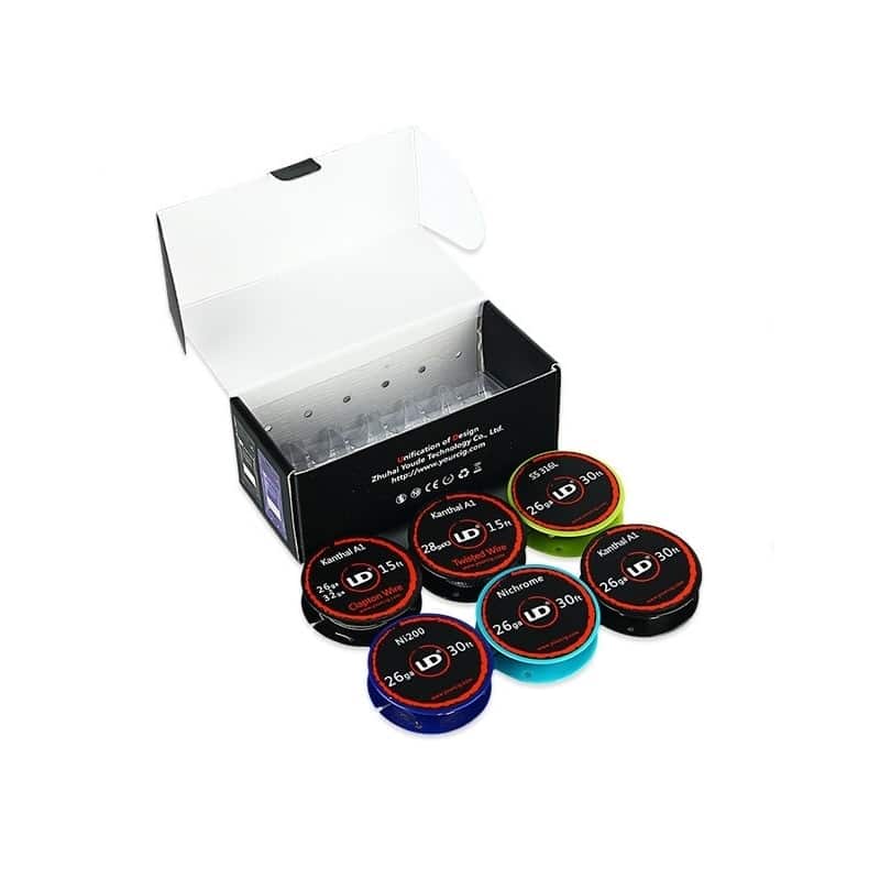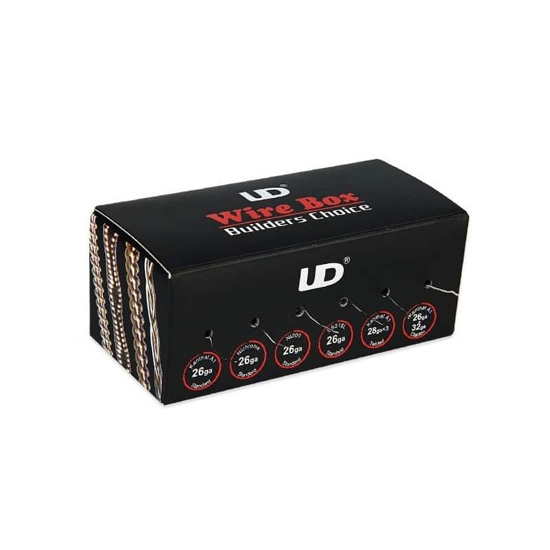 Wire Box de UD, caja con 6 carretes de cables en diferentes estilos de cables, excelente para aquellos vapeadores que utilizan reconstruibles y gustan experimentar con diferentes estilos, en su caja muy practica que solo acomodas los carretes para simplemente estirar la cantidad de cable necesario y listo.