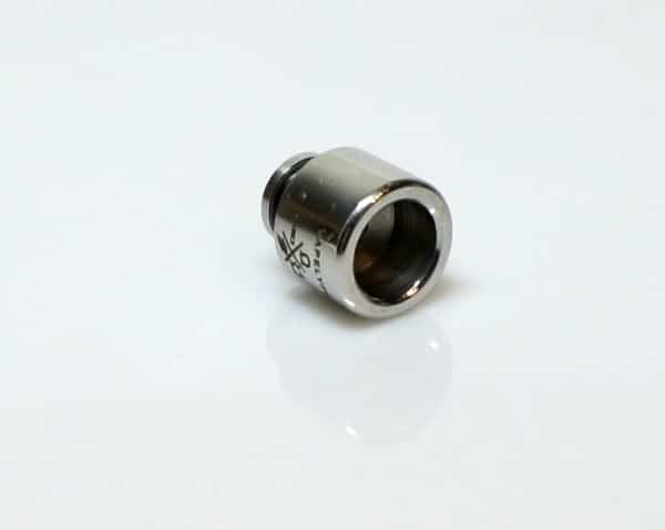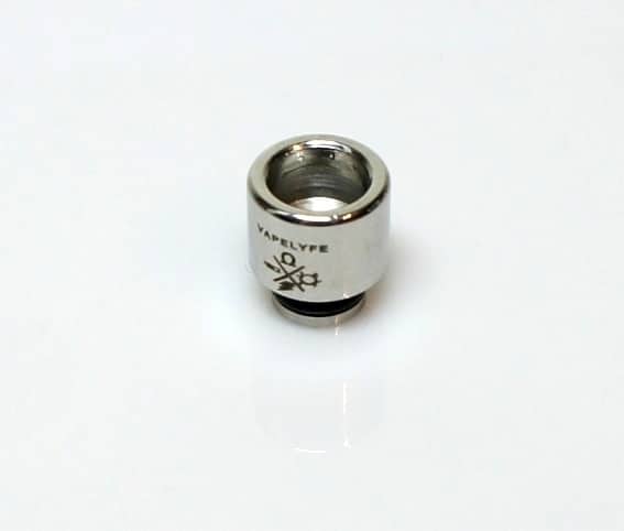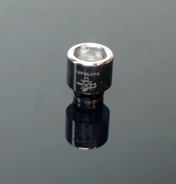 Boquilla 510 Vapelyfe en acero inoxidable con gravado en láser Vapelyfe, boquilla corta que sirve también como base para insertar otro drip tip.